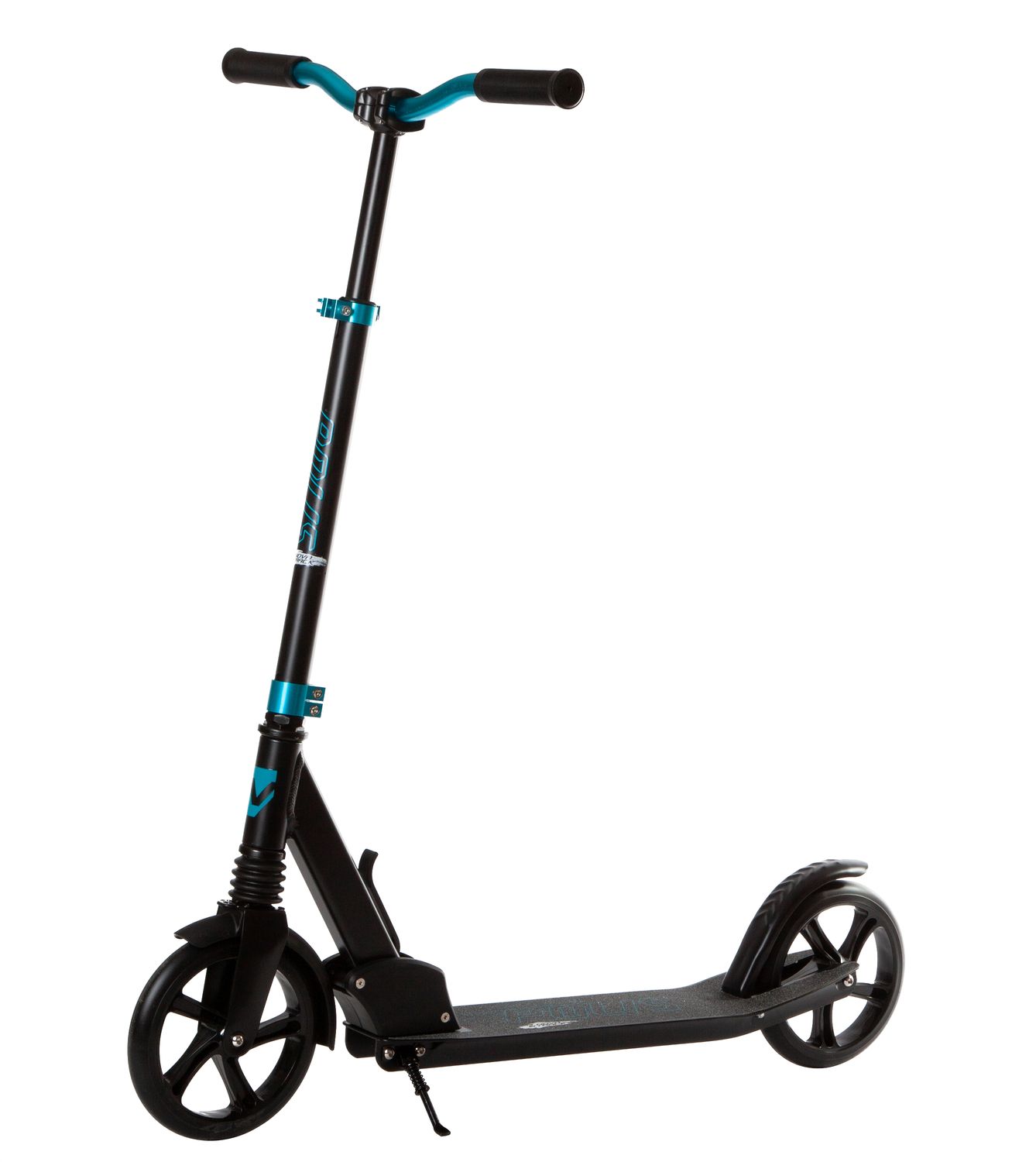 - Большие колёса: Полиуретановые колёса диаметром 200 мм обеспечивают отличный накат и позволяют легко преодолевать неровности, даря уверенность на любых покрытиях.