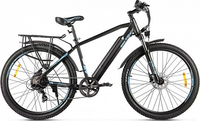 Один заряд аккумулятора позволяет проехать до 50 км, а максимальная скорость составляет 35-38 км/ч. Модель имеет 7-скоростной привод с переключателем Shimano Tourney, а также внедорожные покрышки Kenda с агрессивным протектором на колесах диаметром 27.5 дюймов. Велосипед оснащен передней амортизационной вилкой с блокировкой, которая смягчает неровности на дороге, и дисковой гидравлической тормозной системой, которая позволяет незамедлительно остановиться как только это потребуется.