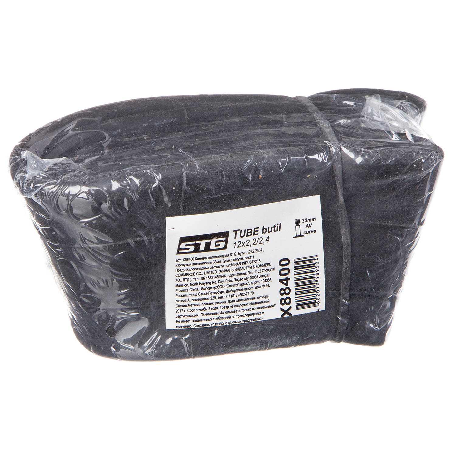 Камера велосипедная STG бутиловая 12Х2,22,4 изогнутый автониппель 33 мм.