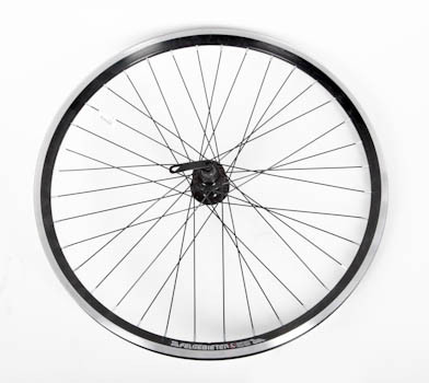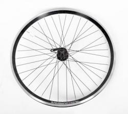 Колесо 26" переднее в сборе(без резины) с двойным алюминиевым ободом на 36 спиц со втулкой под дисковый тормоз.