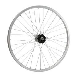 Колесо 24" заднее в сборе(без резины) с одинарным алюминиевым ободом на 36 спиц со втулкой под гайку.