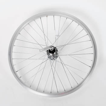 Колесо 24" заднее в сборе(без резины) с одинарным алюминиевым ободом на 36 спиц со втулкой под трещетку на 6 или 7 скоростей.