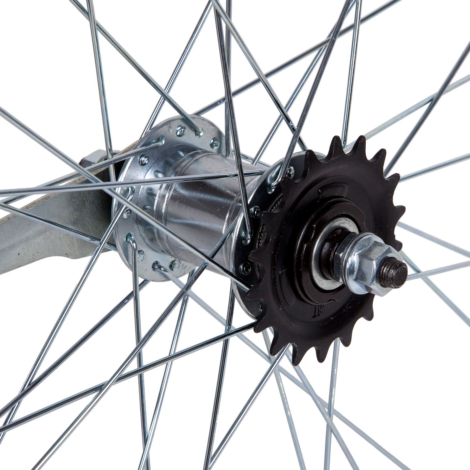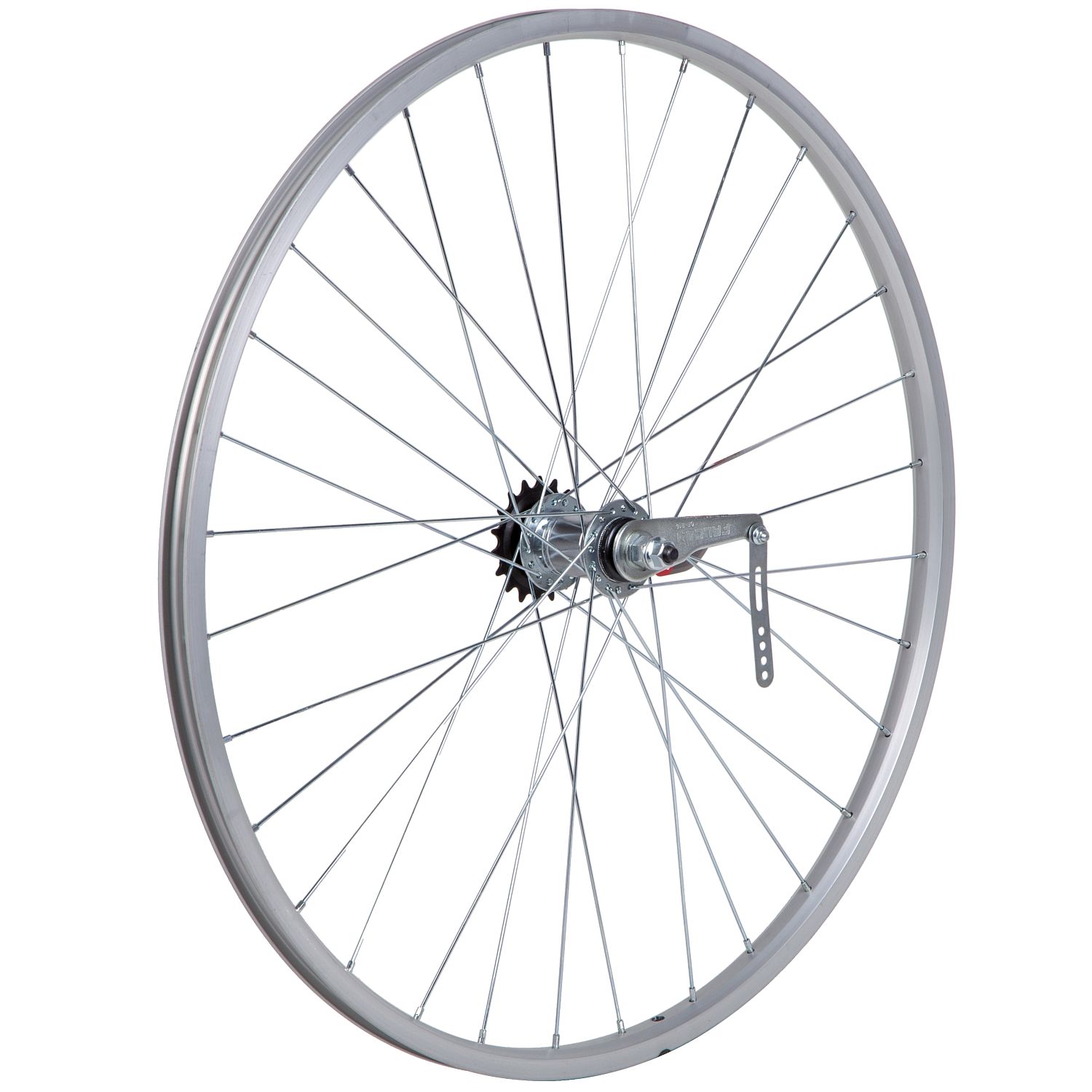 Колесо 28 заднеебез резины, одностенный алюминиевый обод на 32 спицы. Тормазная втулка FALCON, звезда 18 Т.