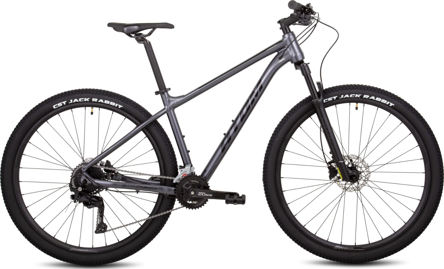 – Колёса 29" с ободами двойного профиля и покрышками CST Jack Rabbit 2.25" – оптимальный баланс скорости и проходимости.