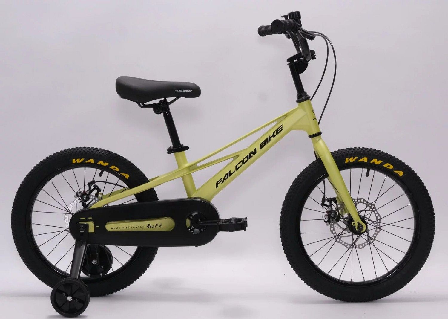Falcon Bike Mild 18" оснащён передовыми инженерными решениями, которые повышают безопасность и комфорт. Дисковые тормоза создают надёжное торможение, а алюминиевые обода добавляют прочности и долговечности. Боковые колёсики и звонок делают велосипед идеальным для начинающих велосипедистов.