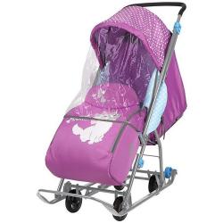 Удобные и практичные санки-коляска - незаменимый помощник мамы и малыша. Теплый чехол на ножки и складной капюшон надежно защитят от ветра, снега и мороза. В таких санках ребенку будет тепло и уютно. Санки удобны тем, что, помимо классических полозьев для езды по снегу, имеются выдвижные колеса, которыми можно воспользоваться на асфальтированных участках дороги, а также для посещения магазина. Такие санки очень удобны в эксплуатации. Удобный механизм качания сглаживает движение коляски по неровностям. Тканевый чехол с утеплителем обладает прекрасными гигроскопическими свойствами. Спинка регулируется, так что малыш сможет с комфортом поспать во время прогулки. Также имеется муфта для мамы, чтобы возить санки было не холодно. Санки оснащены и сумкой для перевозки различных вещей малыша. Она крепится на ручку.