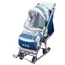 Функциональные санки-коляска - прекрасный транспорт для малыша в зимний период. Теплый чехол на ножки и складной капюшон надежно защитят от ветра, снега и мороза. В таких санках ребенку будет тепло и уютно. Санки очень удобны в эксплуатации. Тканевый чехол с утеплителем обладает прекрасными гигроскопическими свойствами. Спинка регулируется, так что малыш сможет с комфортом поспать во время прогулки. Также имеется муфта для мамы, чтобы возить санки было не холодно.