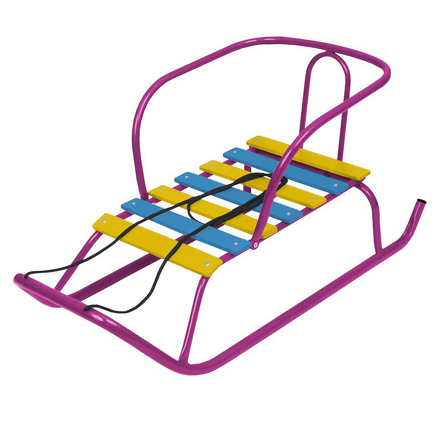 Каркас выполнен из металла, который выдерживает активные катания и долгие зимы. Полозья обеспечивают хорошее скольжение по снегу, а удобная спинка помогает ребёнку сохранять комфортную посадку.
