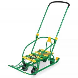 Nikki 3 - качественные, безопасные и эргономичные санки для Русской зимы. Складные спинка и ручка делают санки более компактными для хранения и перевозки. Выдвинув колеса, вы сможете катить санки по гладкому асфальту или полу (например, в магазине или в подъезде). Широкие плоские полозья обеспечивают устойчивость санок и легкое скольжение по снегу. Санки оснащены спинкой с подлокотниками, которые позволяют ребенку крепко держаться, а ремень безопасности не позволит малышу выпасть. Полозья санок загнуты для езды в обоих направлениях.
