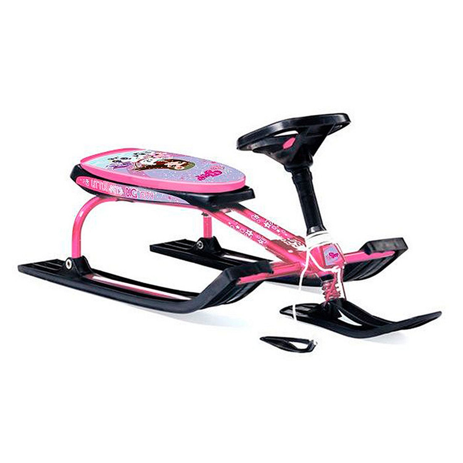 Какой же ребенок не хочет зимой мчаться на снегокате с горки? Детские снегокаты одно из главных зимних развлечений, возможность весело и активно провести время, а также удобное транспортное средство, позволяющее родителям ускорить передвижение по улицам. Это и отличный способ семейного отдыха прокатиться с горы не откажутся даже взрослые. Легкие и удобные снегокаты от российского производителя придутся по душе любому ребенку. Они имеют прочный металлический каркас, удобное сиденье и классическое расположение полозьев. Ребенок может управлять движением снегоката при помощи руля, который направляет ведущую переднюю лыжу. Также имеется прочная веревка с удобной пластиковой ручкой, при помощи которой снегокат легко перемещать. Снегокат имеет мягкое сиденье с принтом.