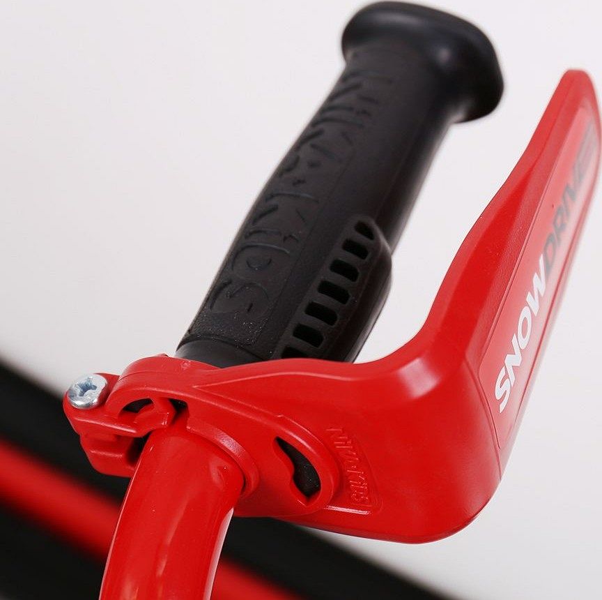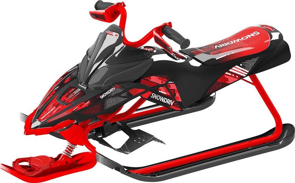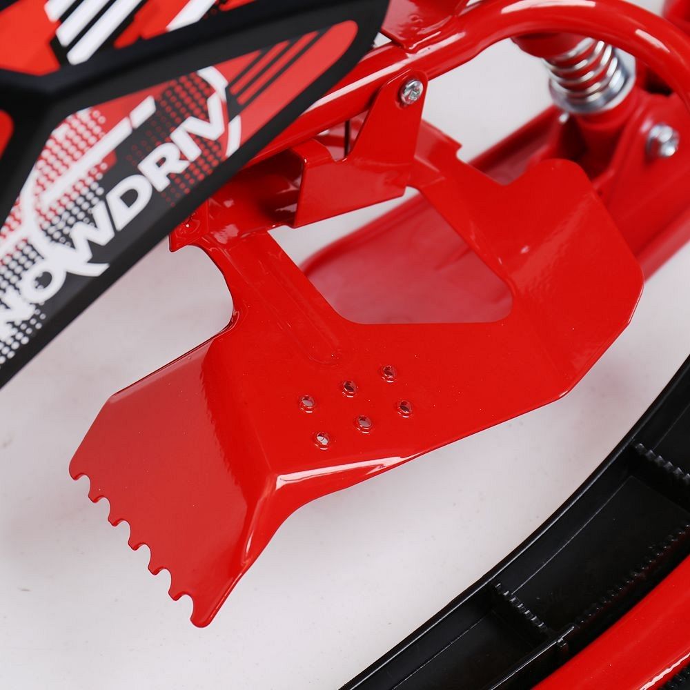 Снегокат оснащён велорулём с защитой для рук, который обеспечивает лёгкость управления и добавляет элемент спортивного стиля. Система амортизации делает катание более плавным и комфортным, смягчая удары и вибрации при движении по неровной поверхности. Светодиодные лампочки в передних фарах не только придают снегокату современный вид, но и повышают видимость в тёмное время суток, что добавляет дополнительный уровень безопасности.