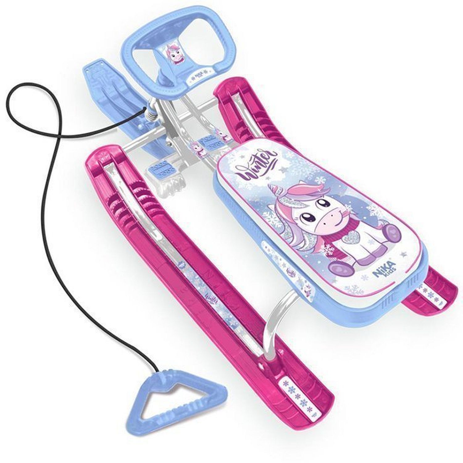 Легкий маневренный снегокат- отличный вариант для семейного досуга. Модель имеет прочный металлический каркас, удобное сиденье и классическое расположение полозьев. Ребенок может управлять движением снегоката при помощи руля, который направляет ведущую переднюю лыжу. Также имеется прочная веревка с удобной пластиковой ручкой, при помощи которой снегокат легко перемещать. Снегокат имеет мягкое сиденье с принтом. Имеется усиленный буксировочный тормоз.