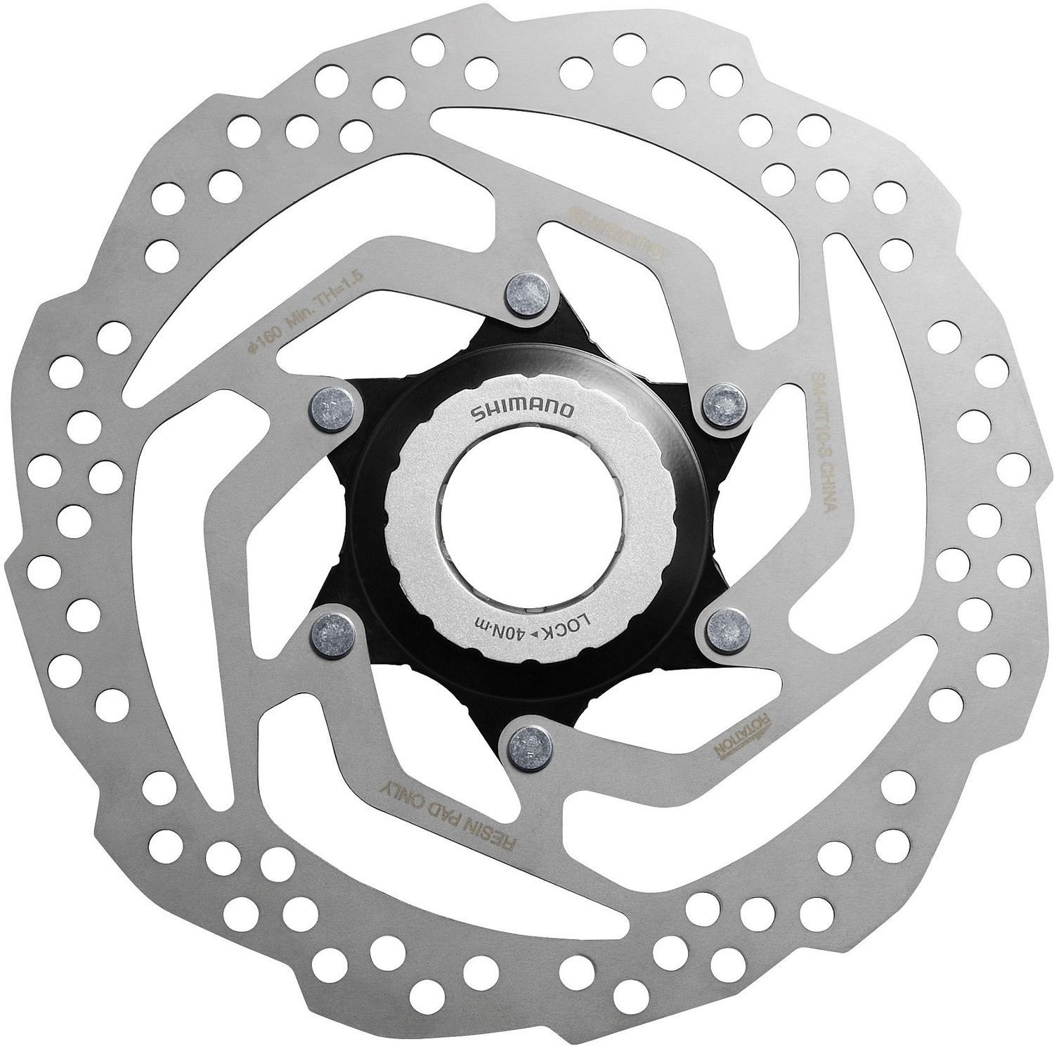 Диск тормозной Shimano Rotor For Disc Brake, SM-RT10, 160mm, W/Lock Ring (Internal And External Serration), For Resin Pad Only.