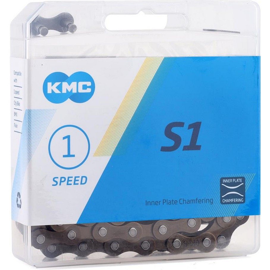 Цепь KMC S1, 1-скоростная, 112 звеньев, 1/2"x1/8", с замком – надёжное и долговечное решение для городских, дорожных, BMX и круизных велосипедов с односкоростной трансмиссией. Прочная конструкция и оптимальная ширина позволяют выдерживать высокие нагрузки, а замок в комплекте упрощает установку и обслуживание.