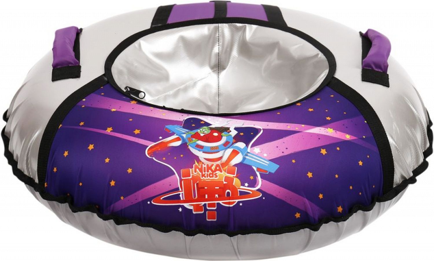 Яркий тюбинг с красочным рисунком превратит зимнюю прогулку в увлекательное событие. Надувные сани полностью изготовлены из высококачественной тентовой ПВХ ткани с глянцевой поверхностью. Усиленная камера входит в комплект изделия. Диаметр 85 см.