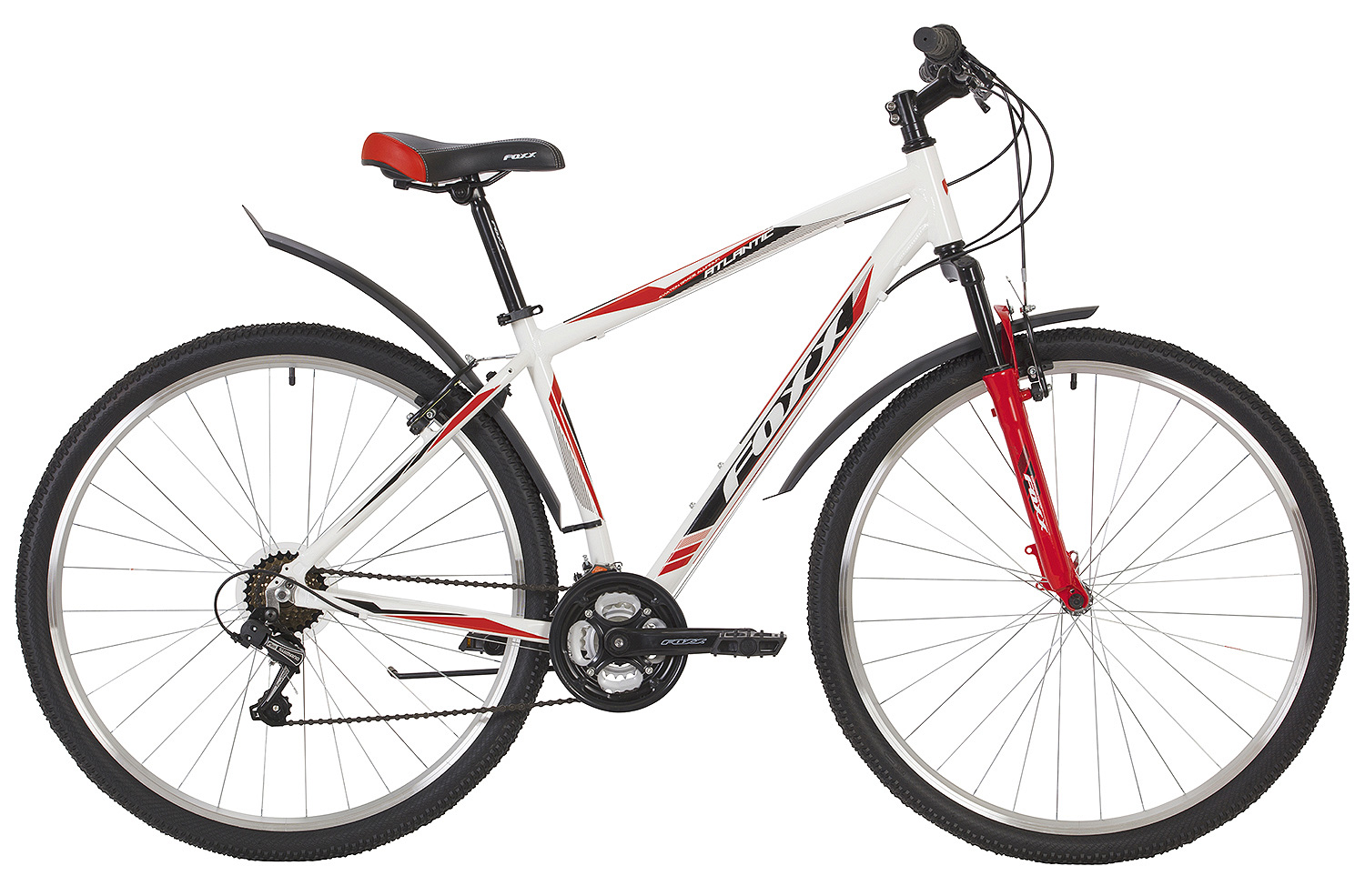 Foxx Atlantic 29 - горный хардтейл на базе надежной алюминиевой рамы с амортизационной вилкой с ходом 60мм. Модель оборудована надежными V-brake тормозами и трансмиссией на 18 скоростей, которая позволит с легкостью преодолевать все подъемы и спуски.