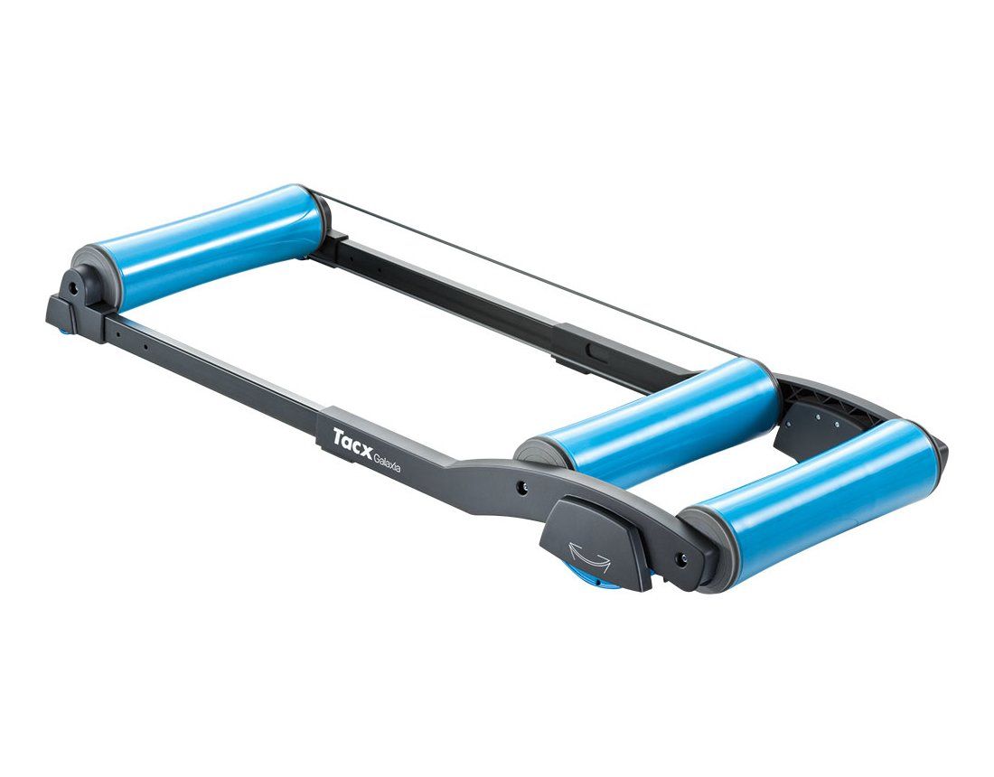 Tacx Galaxia - роллерный велостанок с запатентованной технологией колебания станка вперед и назад. Благодаря этой технологии станок поглощает толчки велосипедиста, тем самым не позволяет потерять равновесие во время тренировки и приближает ощущения езды к реальным. Коническая форма роликов удерживает колеса велосипеда в центральной части и не дает соскочить со станка. Качественные промышленные подшипники обеспечивают отличное вращение и тихую работу.