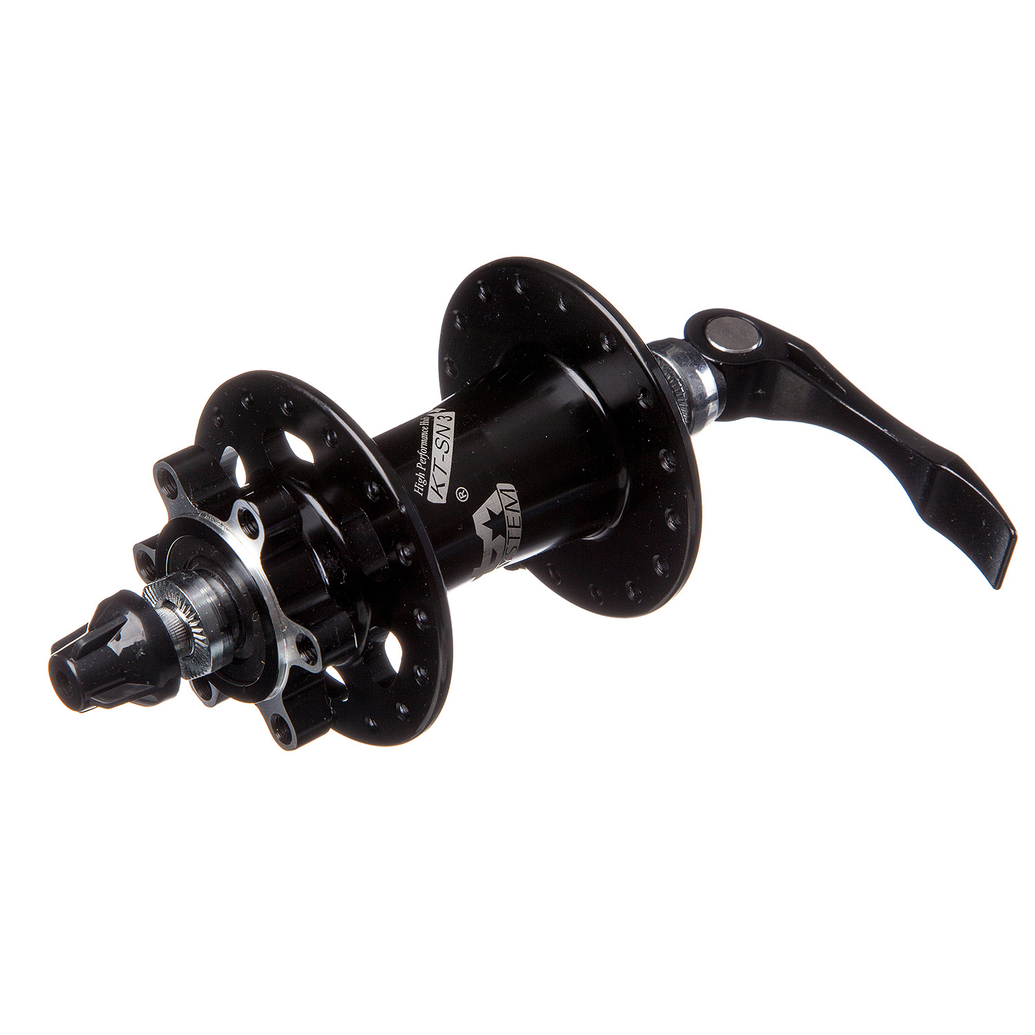 Втулка передняя KT-SN3F под дисковый тормоз, алюминий. Ось - M9xx100x108. Калибр 14G, промышленные подшипники. 32 отверстия под спицы.