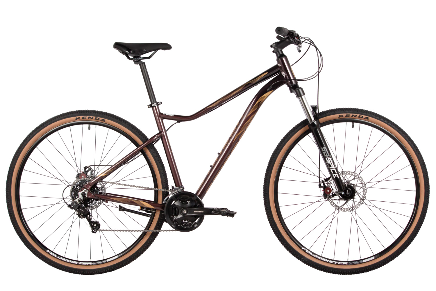 – Пружинная вилка STG Spice с ходом 110 мм для комфортного катания по неровным поверхностям.