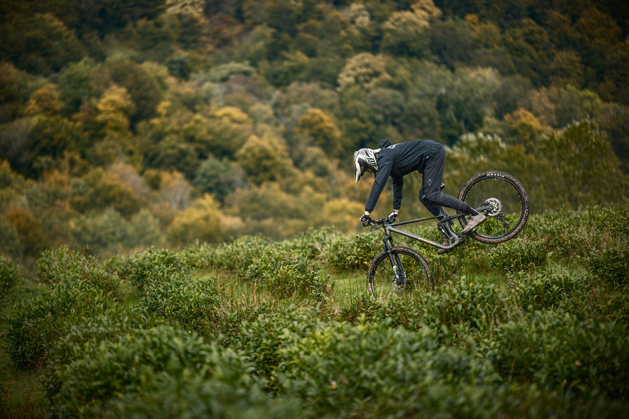 Ход вилки – 120 мм, крепление колеса – через ось 15×100 мм. Это не BOOST, но для любительского катания такой формат оптимален по сочетанию веса, жёсткости и цены.